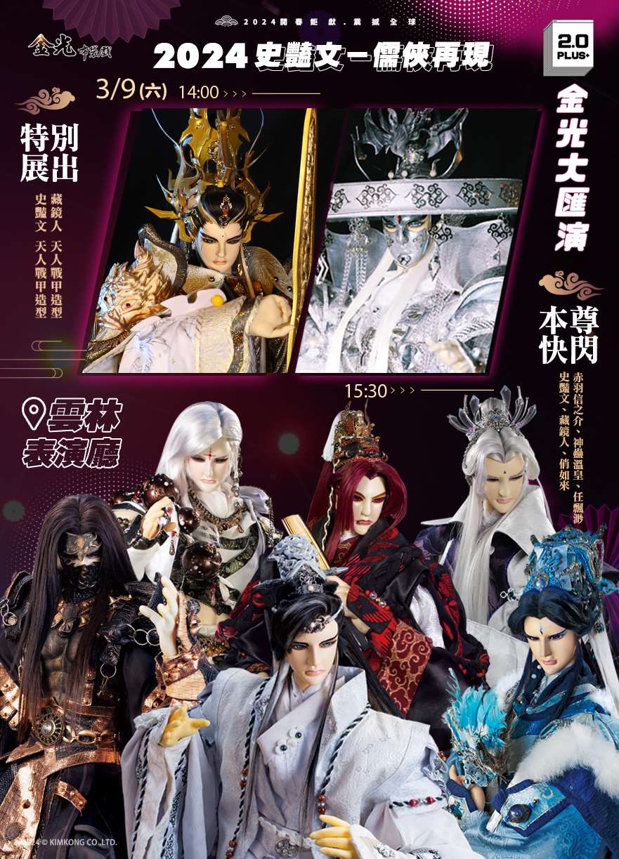今日『2024金光奇幻舞台劇《史豔文-儒俠再現》』,下午於雲林表演廳大廳所舉行金光群星匯,吸引眾多戲迷到場參與,一睹男神風采。本場次為售票入場,1月31日於TixFun双融藝售票平台正式售票,可近距離接觸偶像男神的搖滾互動區,票價僅需950元,而本場次亦配合文化部文化幣青年席位優惠,特別釋出100席文化幣特別席,只需300元便可無負擔欣賞這場結合傳統與科技的跨時代布袋戲演出。更多演出資訊請上雲林表演廳臉書粉專或金光布袋戲粉專查詢。