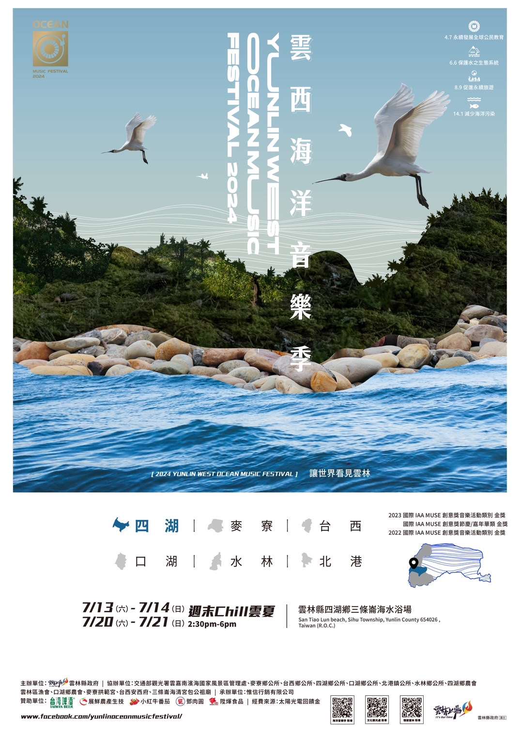 文觀處補充,民眾要掌握最新「2024雲西海洋音樂季」系列活動資訊,請鎖定「雲林縣政府文化觀光處」、「慢遊雲林」或「2024雲西海洋音樂季」活動專屬粉絲專頁,也歡迎大家踴躍下載慢遊雲林APP,更多雲林的食宿遊購行一點全都有。