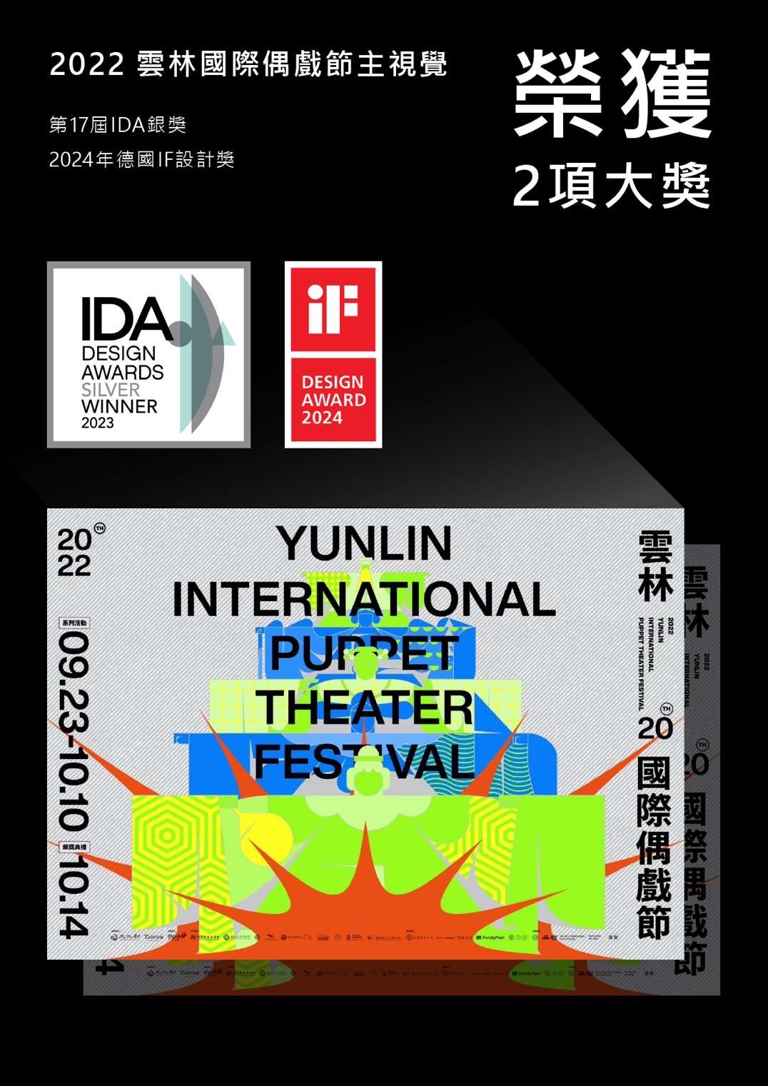 雲林國際偶戲節主視覺設計連三年獲得國際獎項肯定!由雲林縣政府攜手顏伯駿設計師操刀2022雲林國際偶戲節「轟動武林.偶戲無限大」主視覺設計,一舉奪下2024年德國iF 設計獎(iF DESIGN AWARD)標章及美國第17屆IDA 國際設計大獎(International Design Awards)銀獎,再度讓雲林登上國際舞臺。雲林縣政府近年來除了致力於活動內容多元化,在主視覺設計上也有所創新突破,吸引不少年輕族群共襄盛舉。